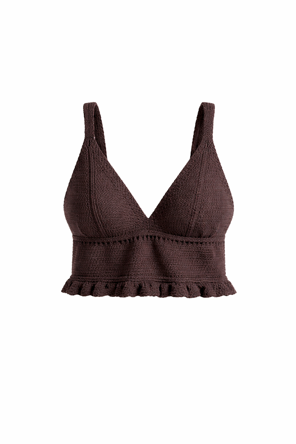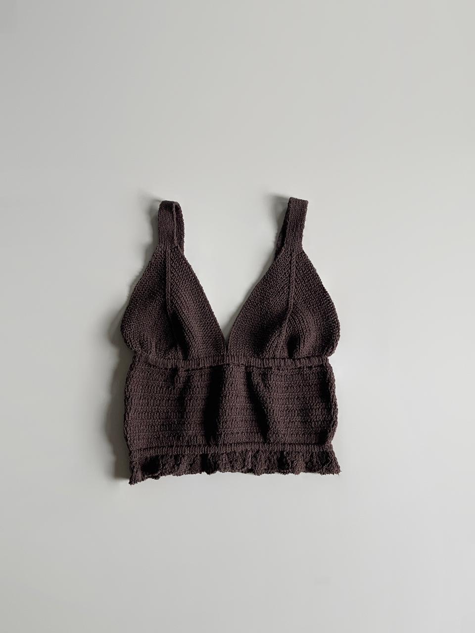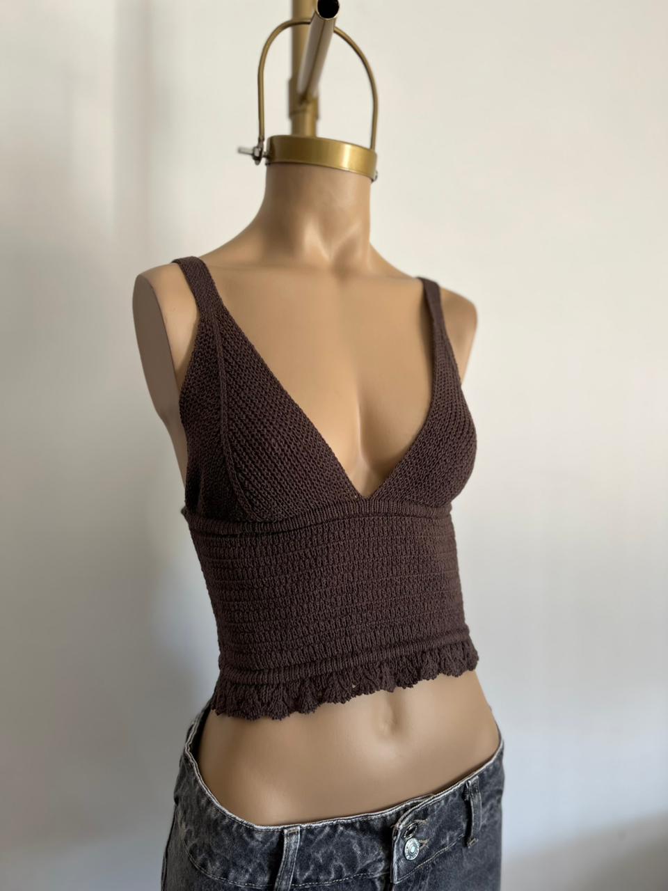 Top tejido con escote en V y tiras anchas. Ideal para looks casuales o de verano